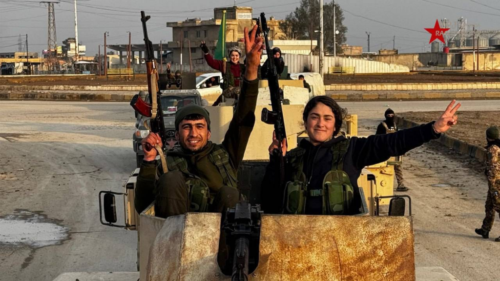 As result of the resistance in Rojava and worldwide, the Syrian Democratic Forces (SDF) and the Syrian Transitional Government of HTS agreed on January 29 to sign a ceasefire agreement the day after, which also regulates the integration of some of Rojava’s institutions into the Syrian state, which has been under negotiation for a year. While this immediately de-escalated the war on the front lines, it is well known that previous ceasefires have been overturned by renewed attacks on the revolution. Now that there is an opportunity to put the agreement into practice, we must understand the interests of the hegemonic powers behind it, how their alliances are changing, and where we need to build pressure to preempt these powers and thwart their plans.